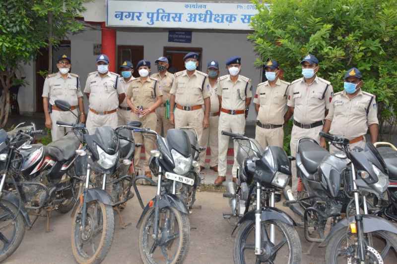 पुलिस ने वाहन चोरों ने कब्जे से मोटर साइकिल एमपी 19 एमएस 3263, एमपी 17 एमएल 6773, एमपी 19 एमवी 5147, एमपी 19 एमएफ 7052, एमपी 19 एमएस 7145, एमपी 19 एमएन 5410, एमपी 19 एमएम 6327, एमपी 19 एमके 9665, एमपी 19 एमबी 2910, एमपी 19 एमएल 8595, एमपी 19 एमजे 4117 जब्त की हैं।