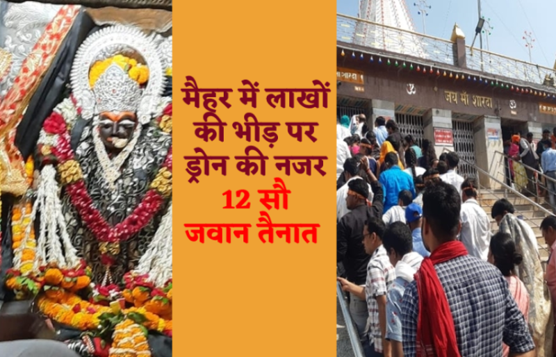 नवरात्र में मैहर में मां शारदा के दर्शन को उमड़ने वाली भीड़ पर ड्रोन कैमरे की नजर है। मंदिर और आसपास के इलाके में करीब 12 सौ पुलिस और होमगार्ड के जवानों को तैनात किया गया हे। मॉनिटरिंग के लिए दो अतिरिक्त पुलिस अधीक्षक स्तर के अधिकारी भी रखे गए हैं। पूरे नौ दिनों तक ड्रोन कैमरा समूचे त्रिकूट पर्वत पर घूम.घूमकर श्रद्धालुओं पर नजर रखेगा।