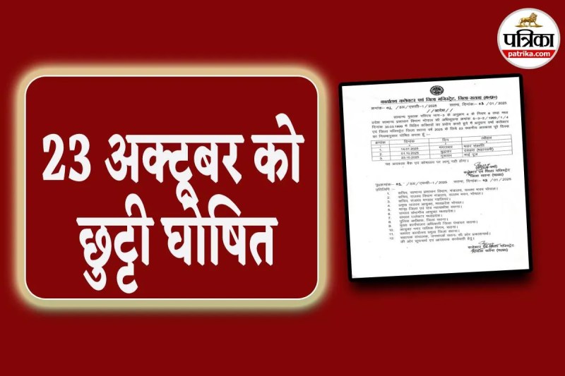 जानकारी के लिए बता दें कि कलेक्टर एवं जिला मजिस्ट्रेट सतना ने साल 2025 के लिए तीन स्थानीय अवकाश घोषित किए गये थे। जारी आदेश के अनुसार 23 अक्टूबर गुरूवार को भाईदूज को स्थानीय अवकाश रहेगा। कोषालय तथा बैंकों पर यह अवकाश लागू नहीं होंगे।