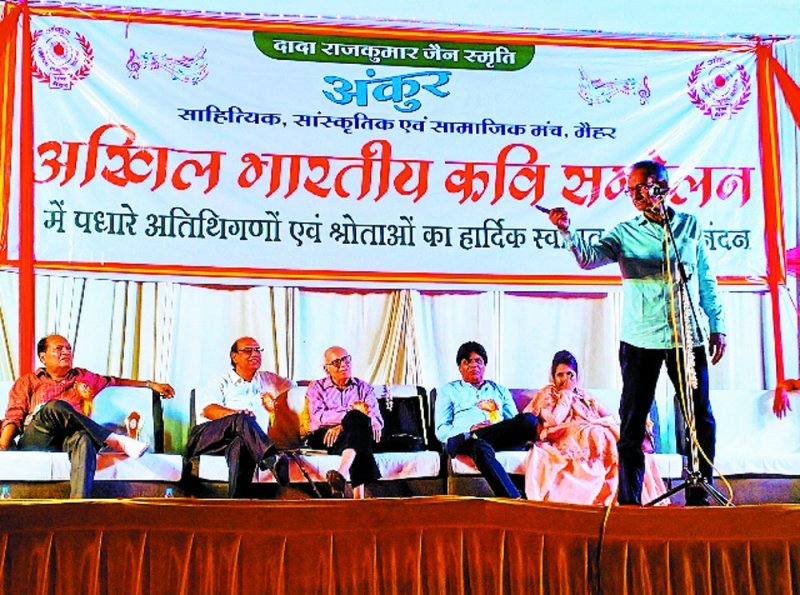 सतना। मैहर उत्कृष्ट विद्यालय परिसर में अंकुर संस्था द्वारा आयोजित 33वें कवि सम्मेलन में नामचीन कवियों व गीत-गजलकारों ने ओजस्वी प्रस्तुतियों से उपस्थित जनसमूह को मंत्रमुग्ध किया। कानपुर की मशहूर कवियत्री शबीना अदीब ने गजल-गीतों से सबका दिल जीत लिया। इस दौरान वरिष्ठ कवि दादा सोम ठाकुर का सम्मान किया गया। सम्मेलन की शुरुआत स्थानीय कवियत्री मधु जैन ने नमामि माता शारदे नमामि माता शारदे...वंदना से किया।
