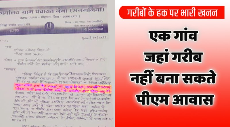 सतना. अगर कोई गरीब ग्राम पंचायत नैना सगमनिया का निवासी है और उसे प्रधानमंत्री आवास स्वीकृत भी हो गया है लेकिन वह अपने गांव में अपना खुद का आशियाना नहीं बना सकता है। इस गांव की पूरी सरकारी जमीनें खनन के लिये एक सीमेन्ट फैक्ट्री को दे दी गई हैं। अब पीएम आवास योजना के पात्र गरीब अपना घर बनाने के लिये परेशान हैं लेकिन उन्हें कहीं से राहत नहीं मिल रही है। कुछ ऐसे भी लोग हैं जिन्हें दो किस्त मिलने के बाद अपना घर बनाना शुरू कर दिया। लेकिन फैक्ट्री के आवेदन के बाद उन पर रोक लगा दी गई। अब ये निर्माण खंडहर में बदल रहे हैं। पंचायत के सरपंच ने इस मामले में कलेक्टर को पत्र लिख कर गरीबों की मदद की गुहार लगाई है।