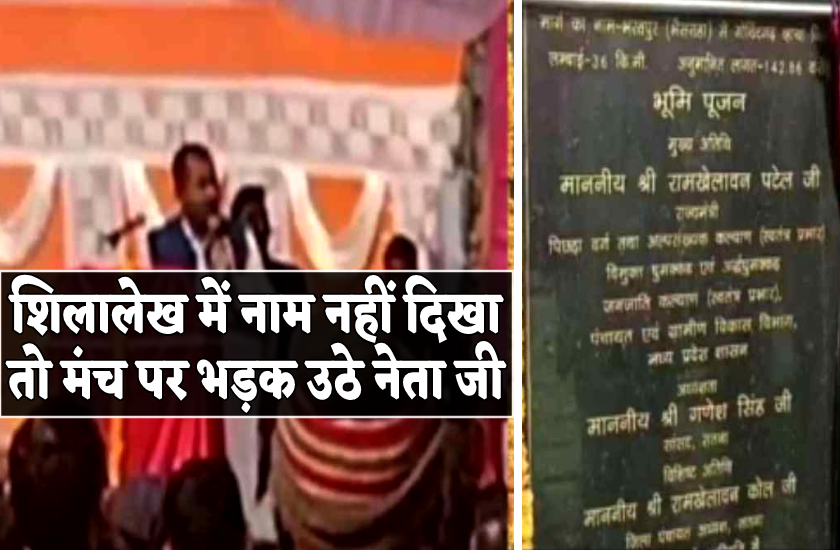 मध्य प्रदेश के सतना जिले में आयोजित एक कार्यक्रम के दौरान मंच पर भाषण देते हुए भाजपा नेता अफसरों पर भड़क उठे। वजह थी कि, नेता जी को शिलालेख में उनका नाम नहीं दिखा तो वो भड़क उठे और एमपीआरडीसी के अफसरों को धमकी दे डाली। उन्होंने मंच पर खड़े होकर अफसरों से कहा कि, अगर इस तरह की गलती दोबारा हुई तो मैं क्षमा नहीं करूंगा। जिस जमीन पर आप खड़े हैं, उसे मैंने भी खरीदा है। काम नहीं होने दूंगा, ट्रक खड़ा करके सड़क जाम कर दूंगा।
