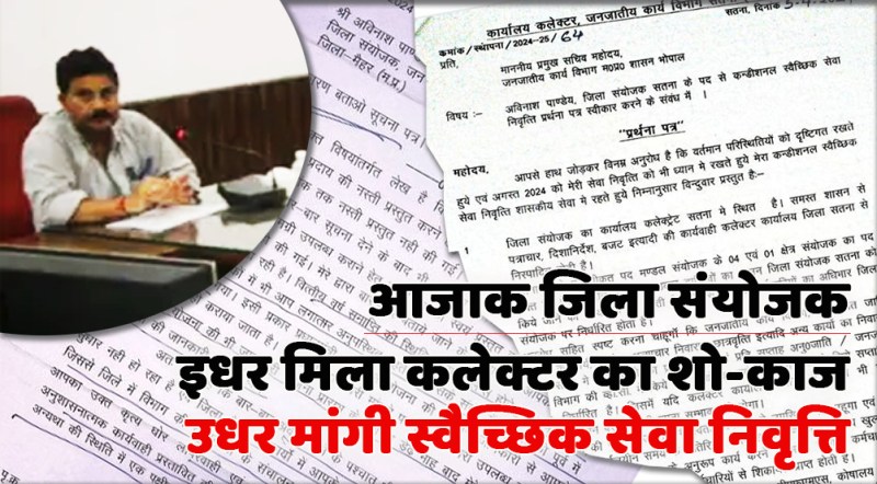 जिला संयोजक पाण्डेय को मैहर कलेक्टर का पत्र 5 अप्रैल को मिलता है। इस पत्र प्राप्ति के बाद जिला संयोजक 5 अप्रैल को ही अपने विभाग के प्रमुख सचिव को एक प्रार्थना पत्र लिखते हैं। जिसमें मंडल संयोजक के 4 और क्षेत्र संयोजक का 1 पद रिक्त होने का हवाला देते हुए खुद पर काम का बोझ होने की जानकारी देते हैं। इसके अलावा जिला पंचायत की बैठकें, कलेक्टर की बैठकों सहित जनप्रतिनिधियों से तालमेल करते हुए कार्य संपादित करने की बात कहते हैं। इन स्थितियों का हवाला देते हुए पीएस को बताते हैं कि इसके बाद भी जिला संयोजक पर दबाव बना कर नस्तियों की मांग करना, दो जिलों के कलेक्टरों के अधीनस्थ कार्य करते हुए नवीन मैहर जिला के कलेक्टर द्वारा अनावश्यक दबाव बनाना एवं कमिश्नर को कार्यवाही के लिए पत्र लिखना सोचनीय विषय है। खुद को मानसिक रूप से प्रताडि़त बताते हुए भविष्य में किसी अनहोनी घटना के कारित होने की आशंका भी जताते हैं। साथ ही चेताते हैं कि इसकी समस्त जिम्मेदारी शासन-प्रशासन की होगी। अंत में स्वैच्छिक सेवा निवृत्ति स्वीकृत करने की प्रार्थना की है।