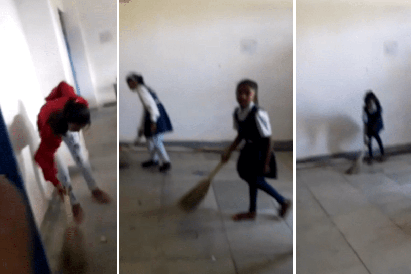 स्कूल पढ़ने भेजते हैं परिवार, यहां प्रिंसिपल लगवा रही हैं छात्राओं से झाड़ू, VIDEO