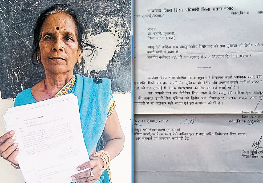 जब वह सेवा पुस्तिका मांगने विद्यालय गई तो जबाव मिला कि गुम हो गई है ढूंढ कर देता हूं। करीब साल भर बीतने के बाद बाबू राजेश नामदेव ने बताया पुस्तिका नहीं मिल पाई है। इसके बाद महिला ने प्रधानाध्यापक को दूसरी सेवा पुस्तिका जारी करने की मांग कई बार लिखित रूप से पत्र की है, लेकिन वहां भी सुनवाई नहीं हुई।