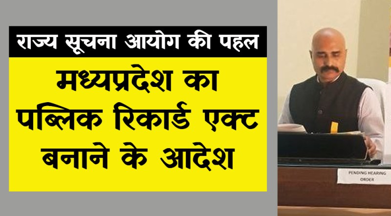 राज्य सूचना आयुक्त राहुल सिंह ने अपने आदेश में यह स्पष्ट करते हुए कि सूचना का अधिकार अधिनियम में दस्तावेजों के प्रबंध एवं विनाश संबंधित पद्धतियों में आवश्यक परिवर्तन करने के अधिकारिता आयोग के पास है, प्रमुख सचिव सामान्य प्रशासन विभाग को आदेशित किया कि पब्लिक रिकॉर्ड के प्रबंधन और प्रशासन के लिए मध्यप्रदेश का पब्लिक रिकॉर्ड एक्ट बनवाने के लिए विभागीय स्तर पर उचित कार्रवाई सुनिश्चित करें। साथ में राज्य सूचना आयोग ने यह भी कहा है कि जब तक पब्लिक रिकॉर्ड एक्ट बंद कर लागू नहीं होता है उस समय अवधि के लिए केंद्र के पब्लिक रिकॉर्ड एक्ट के अनुरूप मध्यप्रदेश में रिकॉर्ड मेंटेनेंस के लिए गाइडलाइन जारी कर समस्त विभागों को निर्देशित किया जाए इस प्रकरण में सिंह ने 23 जनवरी 2023 तक सामान्य प्रशासन विभाग से रिपोर्ट तलब की है।