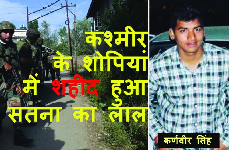 सतना. जम्मू कश्मीर के शोपियां में आतंकियों के खिलाफ सुरक्षा बलों के चल रहे ऑपरेशन के दौरान आतंकियों से हुई क्रास फायरिंग में सतना के लाल कर्णवीर सिंह वीरगति को प्राप्त हुए। सर्च ऑपरेशन के दौरान रोड ब्लाक में कर्णवीर अपने तीन अन्य साथियों के साथ तैनात थे। इसी दौरान एक कार सामने से तेज गति से आती दिखी। उसे रोकने का प्रयास कर्णवीर कर रहे थे, तभी आतंकियों ने फायर खोल दिया। हालांकि कर्णवीर ने दोनों आतंकियों को ढेर कर दिया लेकिन क्रास फायरिंग में गोली उनके सिर और सीने में लगी। जिससे मौके पर ही वे शहीद हो गए। इस एनकाउंटर में इनके साथ रहे तीन अन्य जवान भी घायल हैं। कर्ण के पिता रवि कुमार सिंह ने बताया कि आज ही उनका जन्म दिन था और आज ही वे वीरगति को प्राप्त हुए।