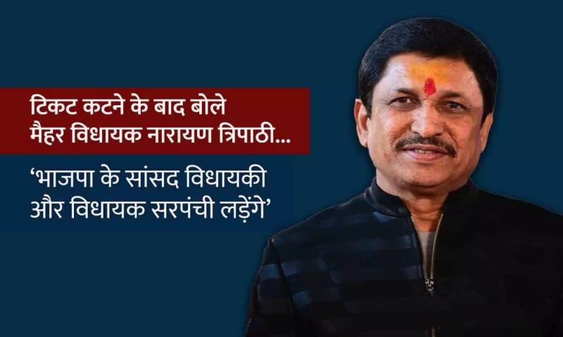 सतना। भाजपा केन्द्रीय संगठन द्वारा सोमवार देर शाम जारी की गई गई विधानसभा प्रत्याशियों की दूसरी सूची में मैहर विधानसभा से वर्तमान विधायक नारायण त्रिपाठी को दरकिनार कर कांग्रेस से भाजपा में आए श्रीकांत को पार्टी प्रत्याशी बनाया गया है। मैहर से टिकट कटने पर वर्तमान विधायक नारायण त्रिपाठी ने तीखी प्रतिक्रिया व्यक्त करते हुए टिकट काटने के लिए भाजपा को बधाई दी है।