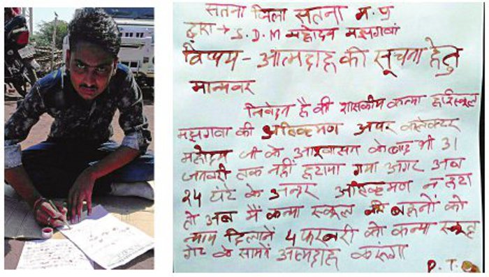 majhgawan school issue write letter to satna Collector with blood