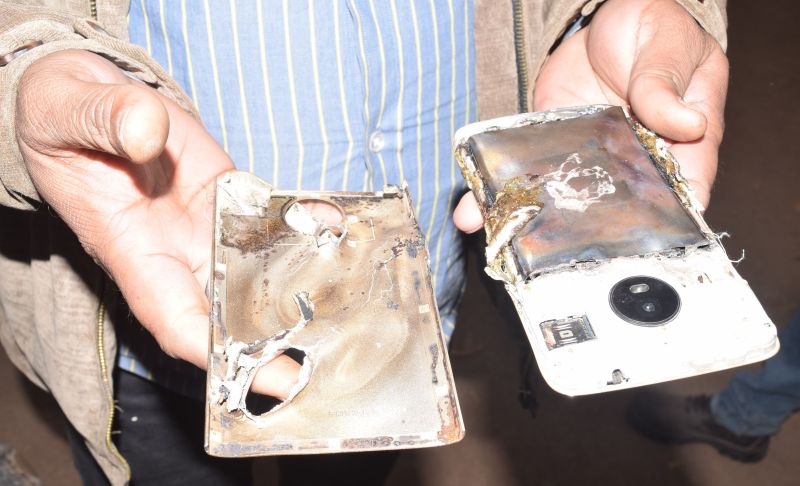 सीएंडडब्ल्यू में पदस्थ मास्टर क्रॉफ्टमैन आशीष कुमार जायसवाल ने बताया कि वह मंगलवार अपराह्न ३ बजे ड्यूटी के दौरान कार्यालयीन डायरी लिख रहे थे। तभी टेबिल पर रखे उनके मोबाइल फोन से अचानक धुंआ निकलने लगा। देखते ही सभी दहशत में आए तो फोन को बाहर फेंकने के प्रयास किए। इस बीच फोन में आग लग गई। किसी तरह फोन दफ्तर से बाहर फेंक पानी से आग बुझाई। कर्मचारियों में अब एंड्रॉयड फोन को लेकर दहशत है। डिपो में मौजूद कर्मचारियों का कहना था कि गनीमत रही जो फोन टेबल पर रखा था। अगर जेब में होता तो बड़ा हादसा हो सकता है। आशीष ने इस घटना के बाद मोबाइल फोन कंपनी को सूचित किया है। कंपनी ने तकनीकी जांच के बाद ही कोई कुछ कह पाने की बात कही है।