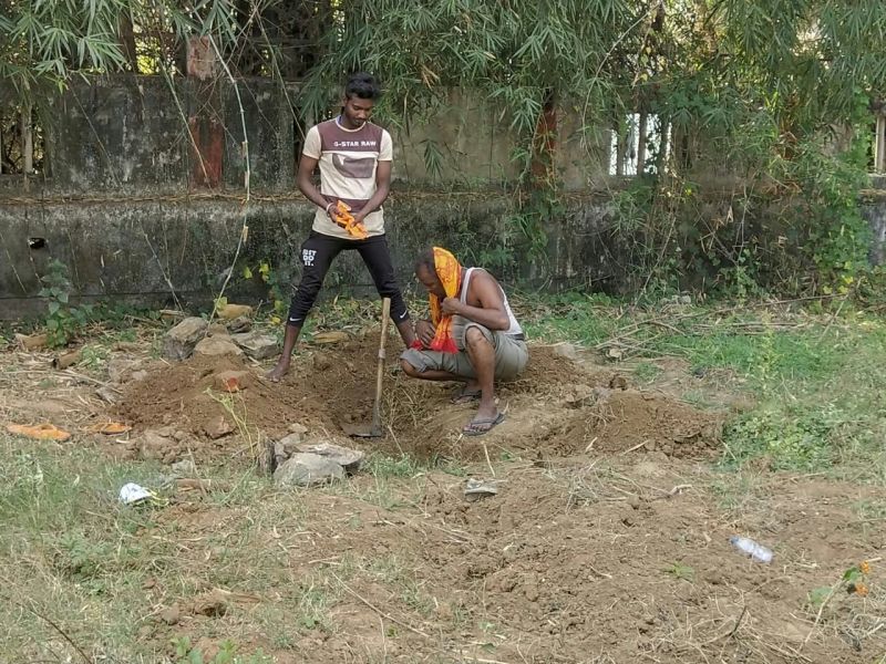 Police removed the dead man's body from the grave in Rewa