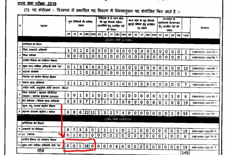 युवाओं ने बताया कि एमपी पीएससी ने इस बार कुल 533 पदों के लिए विज्ञापन जारी किया है। इसमें अनारक्षित के लिए 131 पद, एससी के लिए 71 पद, एसटी के लिए 100 पद, अन्य पिछड़ा वर्ग (ओबीसी) के लिए 195 पद तथा आर्थिक रूप से कमजोर (ईडब्लूएस) के लिए 36 पद निर्धारित किए गए हैं। इस तरह से ओबीसी के लिए आरक्षित पदों को देखा जाए तो यह 36.58 फीसदी है, जो तय 27 फीसदी से काफी ज्यादा है। ईडब्लूएस के लिए तय 10 फीसदी आरक्षण से कम 6.75 फीसदी पद ही विज्ञापित किए गए हैं।
