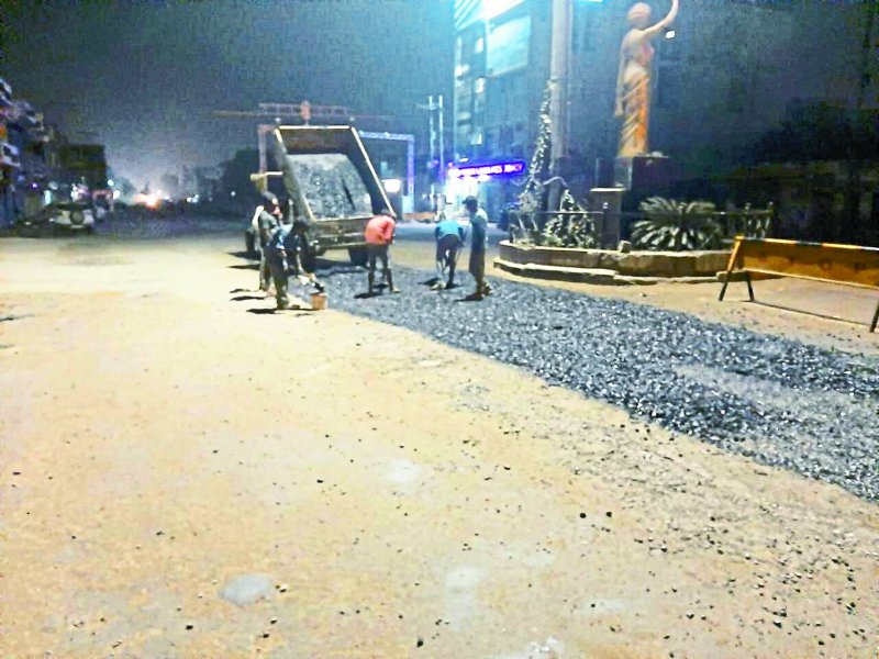 गड्ढों में तब्दील रीवा रोड की मरम्मत का कार्य शुरू होते की बारिश ने खलल डाल दिया है। ठेकेदार ने शनिवार की रात सर्किट हाउस चौराहे से रीवा रोड की मरम्मत का कार्य शुरू किया था। कर्मचारी गड्ढों में गिट्टी पाटकर उसके ऊपर डामर का पैचवर्क कर रहे थे। चौराहे पर डामरीकरण का कार्य पूरा होता, इससे पहले ही बारिश बाधा बन गई। रिमझिम बारिश से सड़क गीली होने के कारण फिलहाल ठेकेदार ने मरम्मत का कार्य रोक दिया है।