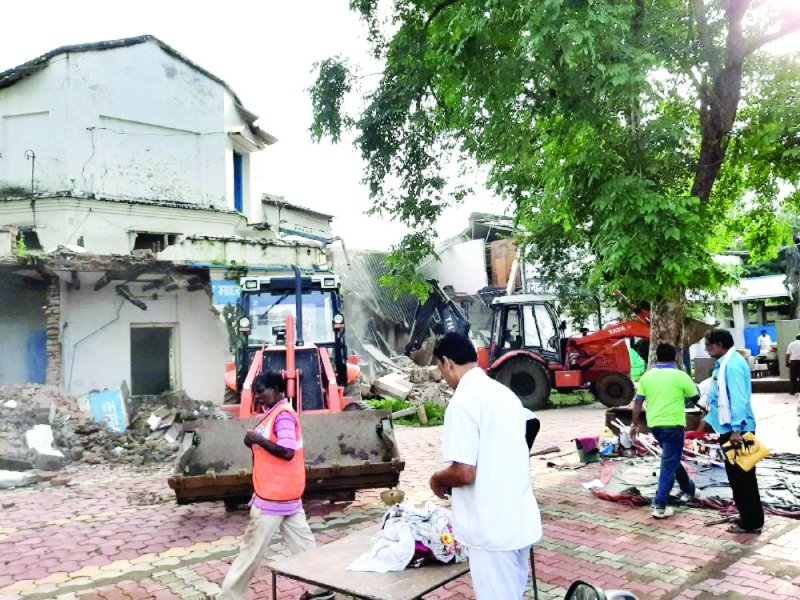Satna Nagar Nigam JCB runs on the dilapidated building of the college