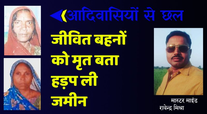 सतना. जिले में आदिवासियों से छल का सनसनीखेज मामला सामने आया है। भू-कारोबारियों ने राजस्व महकमे की मदद से दो आदिवासी बहनों को मृत बताकर उनकी जमीनें दूसरे के नाम करा ली। इस फर्जीवाड़े में समीप की ग्राम पंचायत के सरपंच-सचिव ने भी साथ दिया। मृत्यु प्रमाण पत्र इन्होंने ही जारी किया था। मामला यहीं पर नहीं थमा। आरोपियों ने इस जमीन को बैंक में गिरवी रखकर केसीसी के जरिए 10 लाख का लोन ले लिया। मामले का खुलासा होने पर पुलिस ने मामला दर्ज कर दो आरोपी गिरफ्तार कर लिए हैं। सह आरोपी भी बनाए गए हैं। सरपंच, सचिव, पटवारी और तहसीलदार की भूमिका जांची जा रही है। पूरा घटनाक्रम मैहर तहसील के भदनपुर का है।