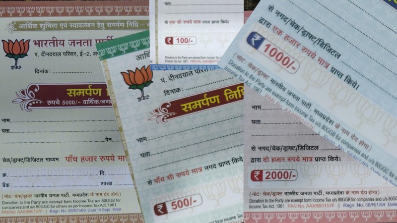 इस बार का चंदा बूछ लेबल के कार्यकर्ताओं से भी लिया जाएगा। पूर्व के वर्षों में अमूमन इनसे चंदा लेने से परहेज किया जाता था। हालांकि इसको देखते हुए पार्टी ने चंदा वसूली के तीन नये छोटी राशि के कूपन जारी किये हैं। इनमें 100 रुपये, 200 रुपये और 500 रुपये के कूपन हैं। इसके पहले तक भाजपा 1000, 5000 और 10000 रुपये के कूपन जारी करती थी।