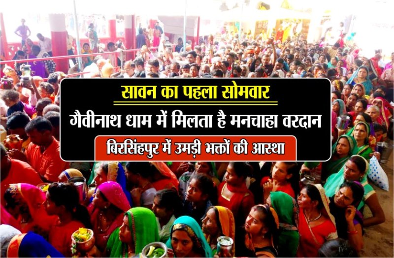 सतना। शिव आराधना का महापर्व सावन मास १७ जुलाई से शुरू हो गया है। श्रावण मास के पहले सोमवार को भक्तों की आस्था उमड़ पड़ी। भोर ४ बजे से ही लंबी लाइन लगी थी। बाबा भोल नाथ की एक झलक पाने के लिए विंध्य क्षेत्र के हजारों भक्त टूट पड़े। सब एक ही स्वर में बाबा के जयकारे लगाते गए। उमस भरी गर्मी के बीच भी श्रद्धालुओं को उत्साह कम नहीं हुआ। बिरसिंहपुर गैवीनाथ मंदिर में मध्यप्रदेश सहित बड़ी संख्या में पड़ोसी राज्य यूपी से भी भक्त पूजा-अर्चना के साथ कथा, दान-धर्म करने आते हैं। कहते है कि ज्यादातर भक्त मन्नत पूरी होने पर भगवान शिव और माता पार्वती का गठजोड़ाव (कपड़े से दोनों मंदिरों को जोडऩा) करते हैं। गठजोड़ाव की परम्परा वर्षों से कायम है।