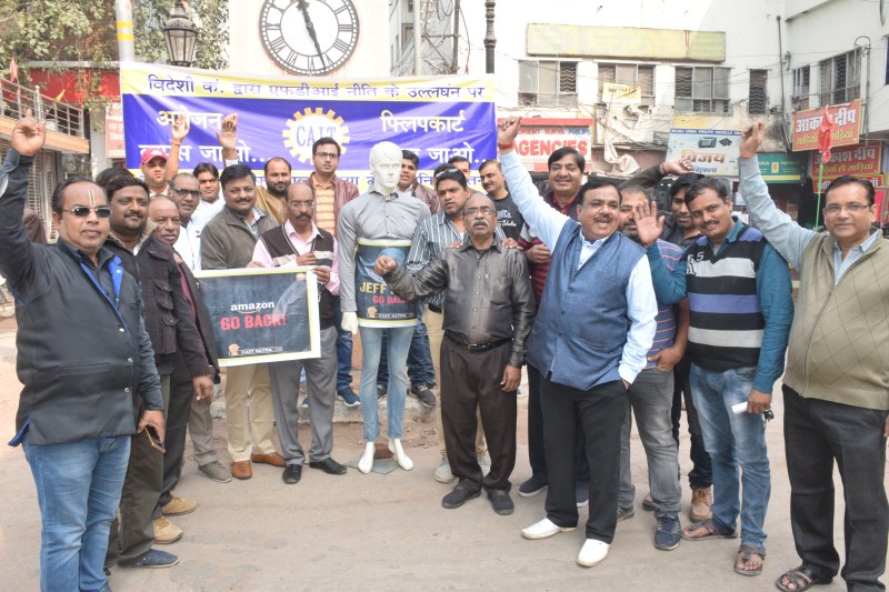 सतना. शहर के व्यापारियों ने बुधवार सुबह पन्नीलाल चौक में विरोध प्रदर्शन कर एफडीआई नीति का उल्लंघन कर रहीं ई-कॉमर्स कंपनियों के खिलाफ जमकर हल्ला बोला। कैट (कंफेडरेशन ऑफ आल इंडिया ट्रेडर्स) के आह्वान पर एकत्रित हुए व्यापारियों ने सुबह 11 बजे से 12 बजे तक जोरदार नारेबाजी की। कैट जिलाध्यक्ष अशोक दौलतानी ने बताया कि ई-कामर्स कंपनियों की गलत नीति के चलते देश का खुदरा व्यापार बर्बाद हो रहा है। उनकी मनमानी रोकने के लिए कैट द्वारा लगातार विरोध-प्रदर्शन किए जा रहे हैं। सरकार के प्रतिनिधियों को भी अवगत कराया गया।