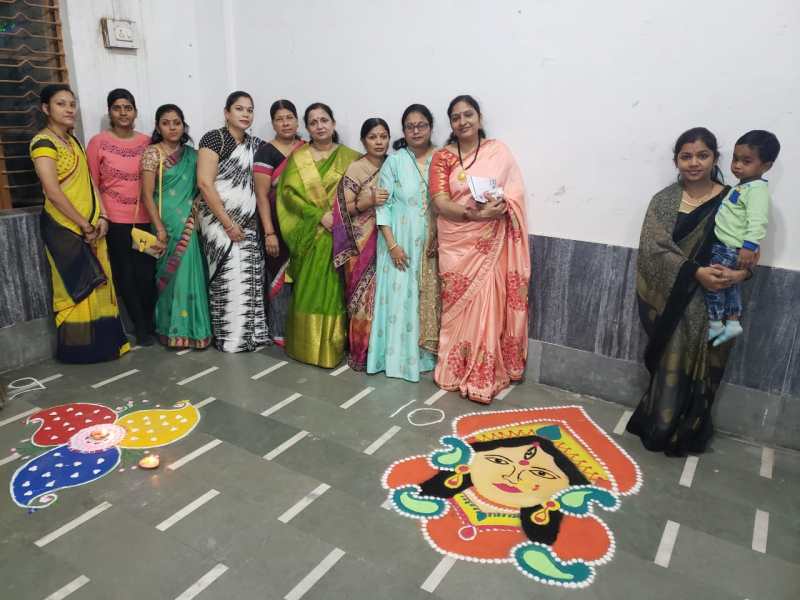 Swastika, smiley, mother Kali's appearance in Rangoli