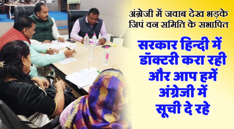 वन स्थाई समिति में यह जानकारी चाही गई थी कि वर्ष 2021-22 से अभी तक खनि लीजें जारी की गई है और इन पट्टाधारियों के नाम चाहे गए थे। इसके साथ ही स्टोन क्रेशर संचालकों की भी जानकारी चाही गई थी। लेकिन खनिज विभाग ने जब अपनी जानकारी प्रस्तुत की तो यह अंग्रेजी में थी। इसे देख वन समिति के सभापति ने कहा कि हमारी सरकार डाक्टरी की पढ़ाई हिन्दी में शुरू करने जा रही है। और यहां आप अंग्रेजी शुरू करने में तुले हैं। अब हमारे जिला पंचायत सदस्य क्या बुढ़ापे में अंग्रेजी सीखेंगे। इन्हें तो यह समझ आएगा नहीं। इस पर खनिज अधिकारी ने अपनी त्रुटि स्वीकार की। इस पर सभापति ने कहा कि यह जानकारी तीन दिन में हिन्दी में तैयार करके भेजें।