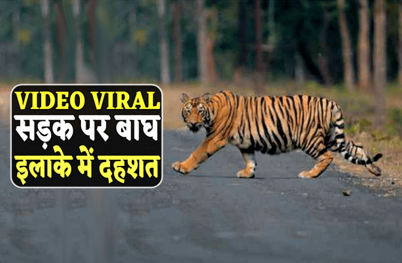सड़क पर आराम फरमा रहा बाघ, इलाके में दहशत, वीडियो वायरल