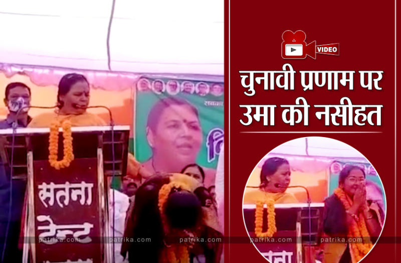 सभा में नतमस्तक हुईं BJP प्रत्याशी, उमा भारती ने टोकते हुए कहा- उतना झुको जितना चुनाव जीतकर झुक सको