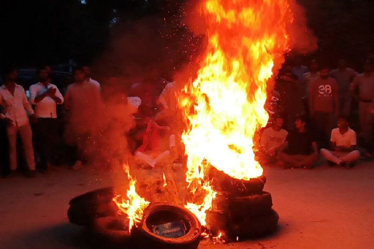 प्रदर्शनकारियों ने सड़क पर कुर्सियां रखकर सभा की और प्रशासन से तत्काल कार्रवाई की मांग की। अधिकारियों के आश्वासन के बाद भीड़ आक्रोशित हो गई और उन्होंने पुलिस व प्रशासनिक अधिकारियों की मौजूदगी में सड़क पर आधा दर्जन टायर जलाए। इससे सड़क पर अफरा-तफरी और जाम की स्थिति बन गई। (mp news)