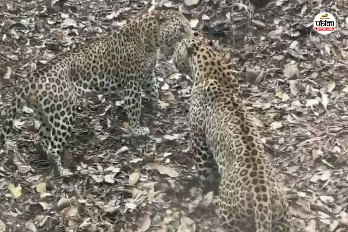 दरअसल बुधवार सुबह श्रद्धालु त्रिनेत्र गणेश के दर्शन के लिए जा रहे थे। इसी दौरान उन्हें त्रिनेत्र गणेश मंदिर मार्ग पर दो लेपर्ड दिखाई दिए। दोनों लेपर्ड एक दूसरे को आमने-सामने देखकर असहज हो उठे और हमलावर हो गए। इस दौरान लेपर्ड के बीच करीब डेढ़ से 2 मिनट तक जमकर फाइट हुई। इसके बाद दोनों लेपर्ड ने जंगल का रुख किया। वहीं इस पूरी घटना को देखने के लिए मौके पर लोगों की भीड़ लग गई।