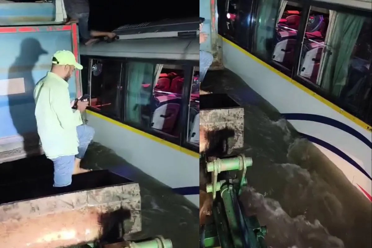 चौथ का बरवाड़ा (सवाईमाधोपुर)। चौथ का बरवाड़ा-शिवाड़ मार्ग पर स्थित बनास नदी की डिडायच रपट पर गुरुवार देर शाम एक बड़ा हादसा होते-होते टल गया। तेज बहाव के बावजूद चालक ने लापरवाहीपूर्वक बस निकालने की कोशिश की, जिससे चित्तौड़ा गांव के 40 से अधिक श्रद्धालु नदी के बीचों-बीच फंस गए। बस में पानी घुसते ही चीख-पुकार मच गई। सूचना मिलते ही आसपास के ग्रामीण घटनास्थल पर पहुंचे और उन्होंने ट्रैक्टर, लोडर व डंपर की मदद से राहत कार्य शुरू किया। तेज बहाव के कारण ग्रामीणों को काफी मशक्कत करनी पड़ी, लेकिन अंततः डंपर की सहायता से सभी यात्रियों को सुरक्षित बाहर निकाल लिया गया।