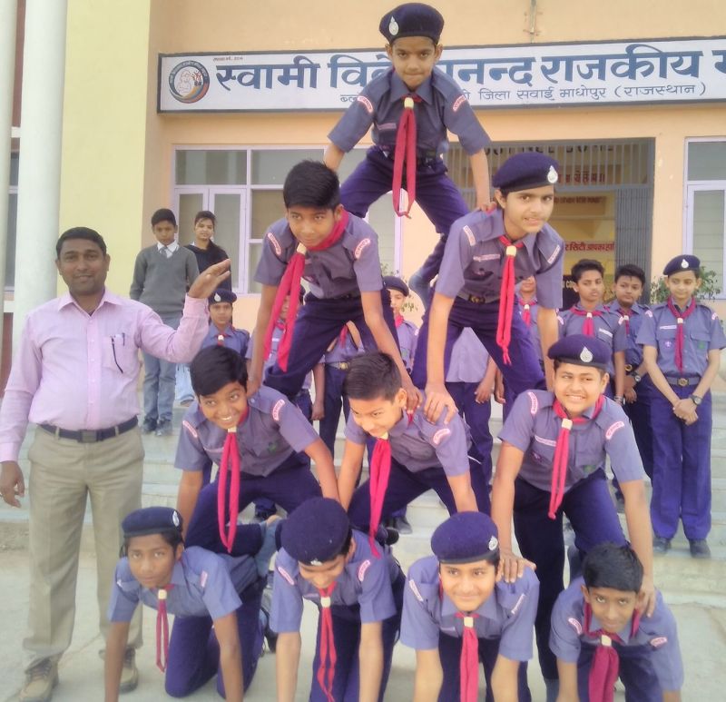 गंगापुरसिटी. स्वामी विवेकानन्द राजकीय मॉडल स्कूल में कौशल का प्रदर्शन करते स्काउट-गाइड।