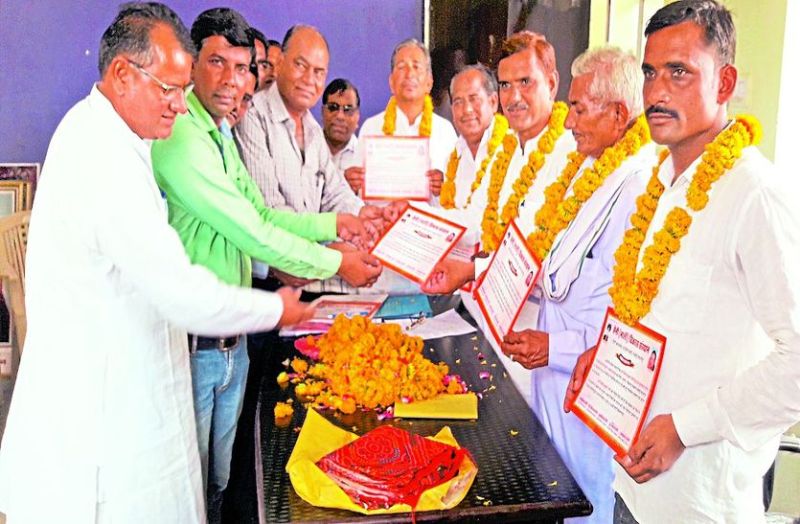 सवाईमाधोपुर सैनी छात्रावास में नवीन कार्यकारिणी को प्रमाण पत्र देते मुख्य निर्वाचन अधिकारी।