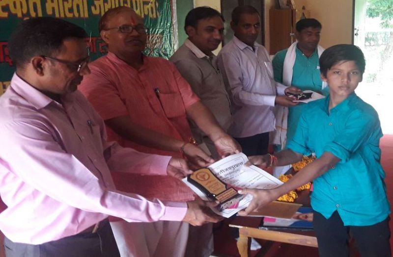संस्कृत सप्ताह के तहत विजेता प्रतिभागी को पुरस्कृत करते अतिथि।