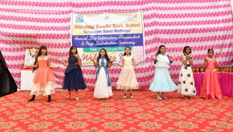 सवाईमाधोपुर.महात्मा गांधी राजकीय विद्यालय साहूनगर में वार्षिकोत्सव में प्रस्तुतियां देती बालिकाएं।