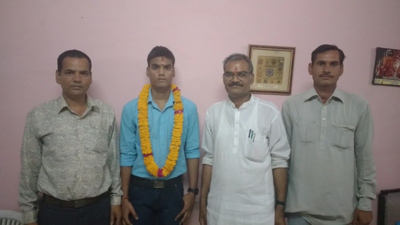 सवाईमाधोपुर में अभिावक व शिक्षकों के साथ आदर्श विद्या का मेधावी छात्र।