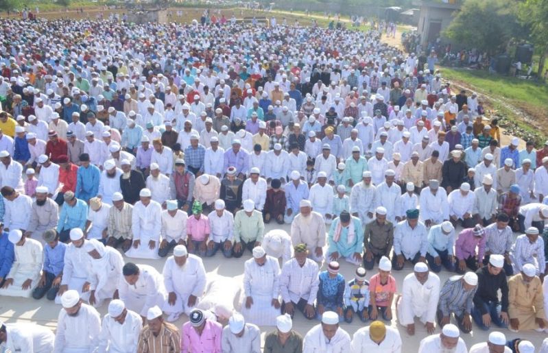 सवाईमाधोपुर में ईद की नमाज अदा करते समाज के लोग।