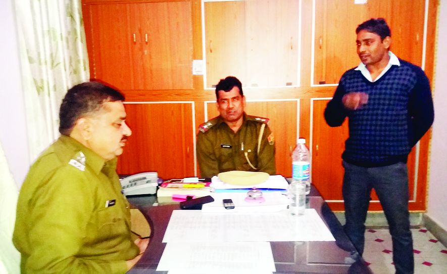 मलारना डूंगर थाने में चर्चा करतेे पुलिस अधिकारी।