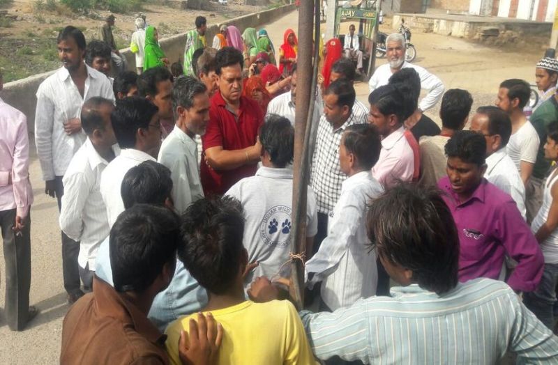 वार्ड 32 रैगर बस्ती में जेईएन को समस्या बताते लोग।