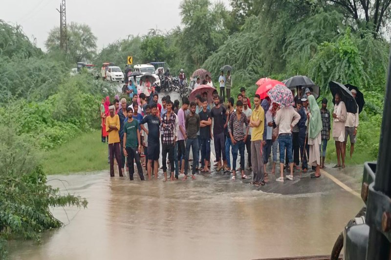 Heavy Rain in Rajasthan: प्रदेश के कई जिलों में अतिवृष्टि से जनजीवन प्रभावित है। भाड़ौती-मथुरा मेगा हाइवे स्थित बहतेड़ मोरेल नदी में हाइवे के ऊपर दो फिट पानी बह रहा है। इससे आवागमन बंद हो गया।