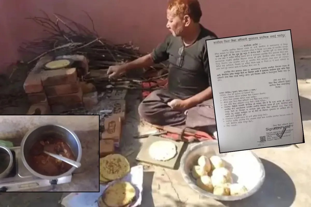 सोमवार को प्रधानाध्यापक अमरसिंह मीना द्वारा विद्यालय परिसर में मीट और रोटियां पकाने का वीडियो सोशल मीडिया पर वायरल हुआ था। जिसके बाद शिक्षा विभाग में हड़कंप मच गया।