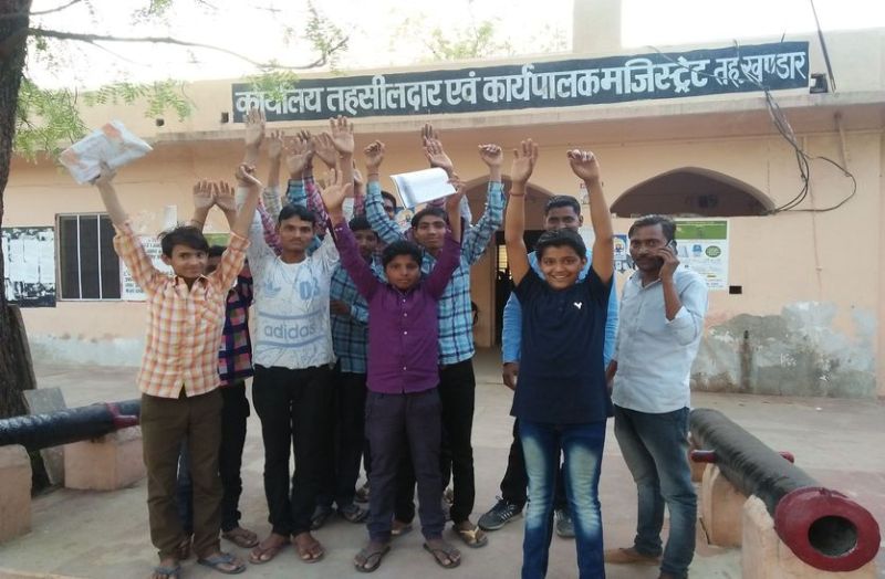 खंडार तहसील परिसर मे प्रदर्शन करते हुए छात्र ।