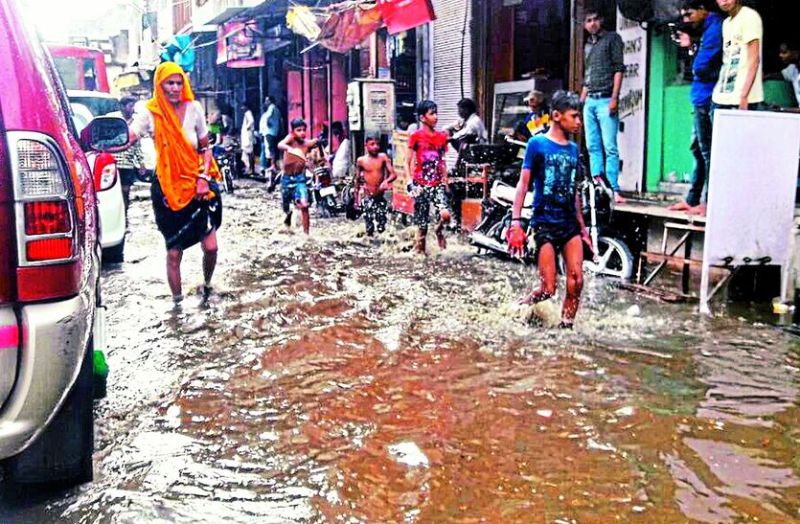 सवाईमाधोपुर शहर के मुख्य बाजार में भरा पानी।