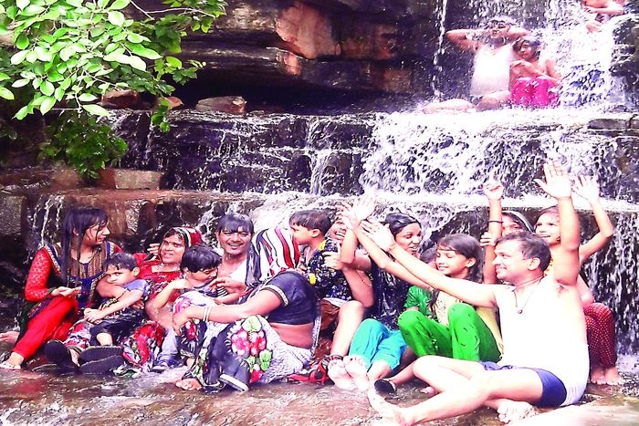गंगापुरसिटी. धुंधेश्वर महादेव की गोद। हरियाली से अच्छादित पहाडि़यां और इनके बीच से गिरते मनोहारी झरने। देर तक पहाड़ों से गिरते जलप्रपात को एकटक निहारते लोग, मानो ऊंचाई से गिरती धाराओं की एक-एक बंूद को गिन लेना चाहते हैं। इस मनमोहक नजारे को देखने के लिए रविवार को लोगों का हुजूम चूली गांव की ओर निकल पड़ा। परिवार के साथ पहुंचे लोग मंदिर में माथा टेकने के बाद झरनों में जमकर नहाए।