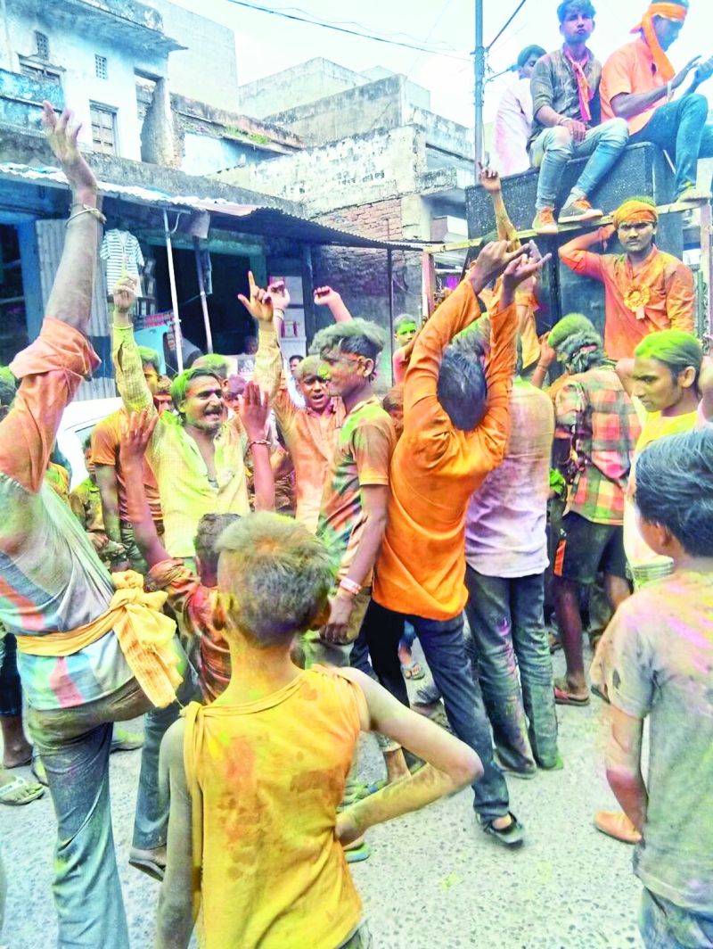 विनोबा बस्ती की ओर से निकाले गए गणेश विसर्जन जुलूस में नाचते श्रद्धालु।