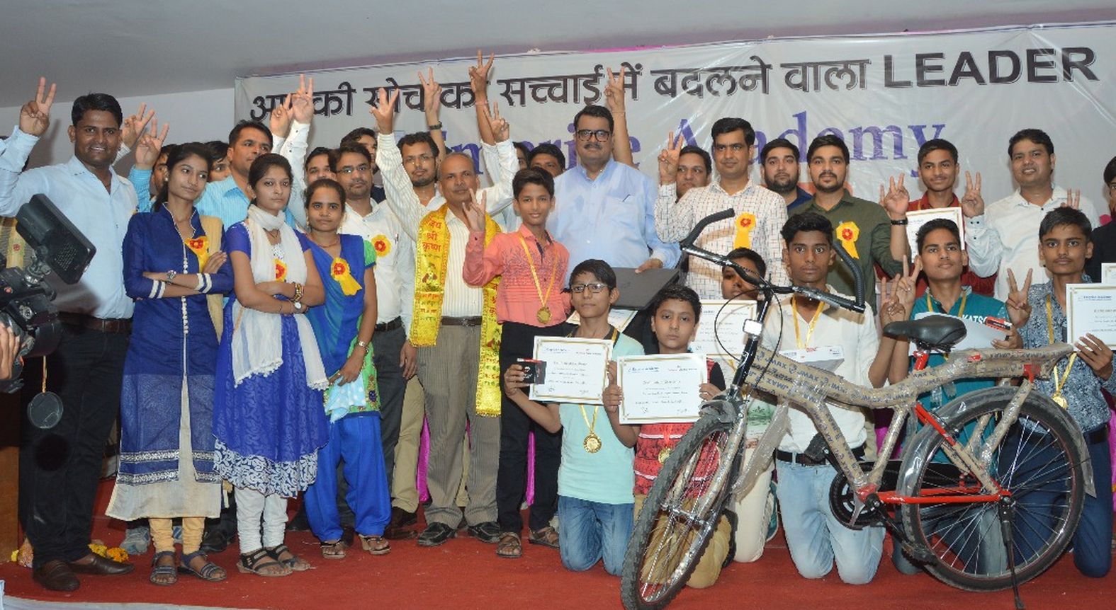 इस मौके पर मोटिवेशन सेमिनार भी हुई। कार्यक्रम की शुरुआत अग्रवाल कन्या महाविद्यालय के प्राचार्य डॉ. बृजेन्द्र गुर्जर, डॉ. एसएन शर्मा, सुशील डागुर व पवन शर्मा ने दीप प्रज्वलन करके की। प्रतिवेदन प्रस्तुत करते हुए निदेशक राकेश कुमार ने कहा कि एकेडमी छात्रों के सर्वांगीण विकास पर कार्य कर रही है। क्वालिटी एजुकेशन के प्रति संकल्पवान है। इस मौके पर परीक्षा में प्रथम रहे अनिरूद्ध गुप्ता को लेपटॉप, द्वितीय रहे भावेश शर्मा को टेबलेट व तृतीय रहे शिवम त्रिवेदी को साइकिल दी गई। छह विद्यार्थियों को कलाई घड़ी व दो सौ को सर्टिफिकेट दिए गए। इसके अलावा एकेडमी के छात्र अक्षत तिवारी के विज्ञान वर्ग में सर्वाधिक अंक पीसीबी में 97.64 रहने पर सम्मानित