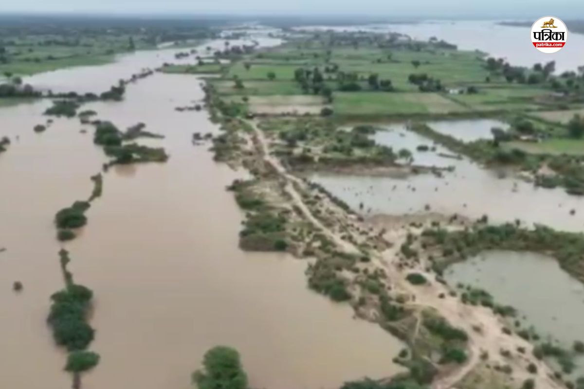 भारी बारिश के चलते लगातार बढ़ रहा बनास नदी में जल स्तर। फोटो: पत्रिका