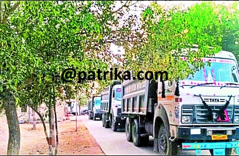 खण्डार कस्बे में आईटीआई कॉलेज के समीप से गुजरते बजरी के वाहन।