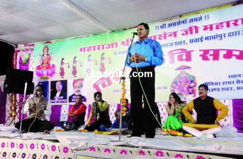 सवाईमाधोपुर. अग्रवाल समाज समिति शहर के तत्वावधान में मनाए जा रहे अग्रसेन जयन्ती महोत्सव के तहत शनिवार रात को राउमावि खेल मैदान में कवि सम्मेलन का आयोजन हुआ। कार्यक्रम का आगाज कवियत्री काव्या मिश्रा ने सरस्वती वंदना कर किया।