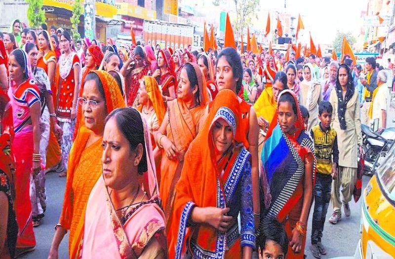 सवाईमाधोपुर बजरिया में शोभायात्रा में में शामिल महिलाएं।