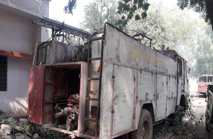 नगरपरिषद में खराब पड़ी दमकल।