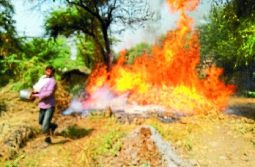 कड़बी सहित ईंधन जला